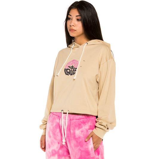 GRIMEY SPACE LADY GIRL LONG SLEEVE HOODED TEE SAND