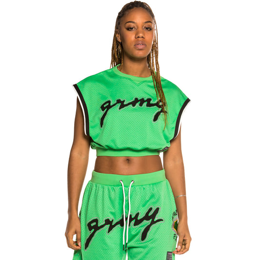 GRIMEY STRANGE FRUIT GIRL MESH TANK TOP GREEN