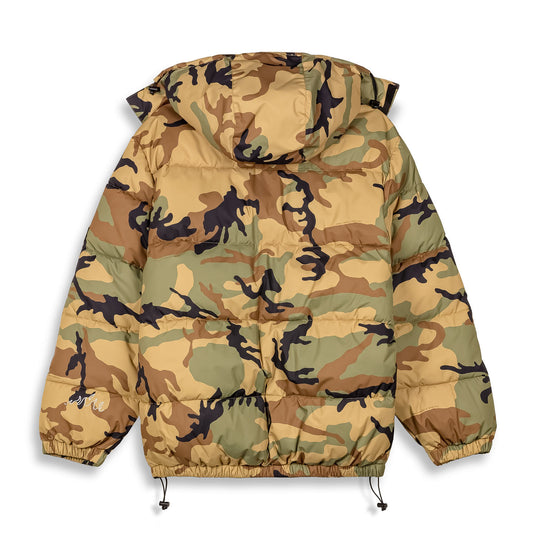 FOLLOW THE DOLLAR CAMO HOOD PUFFER JACKET BROWN CAMO