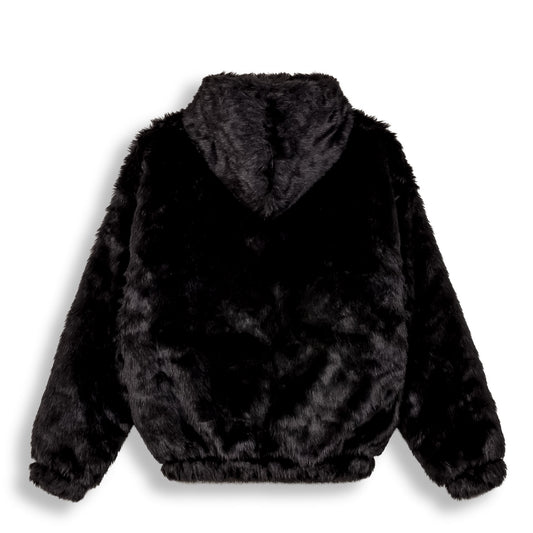 ROYAL PAW FAUX FUR HOODED JACKET BLACK