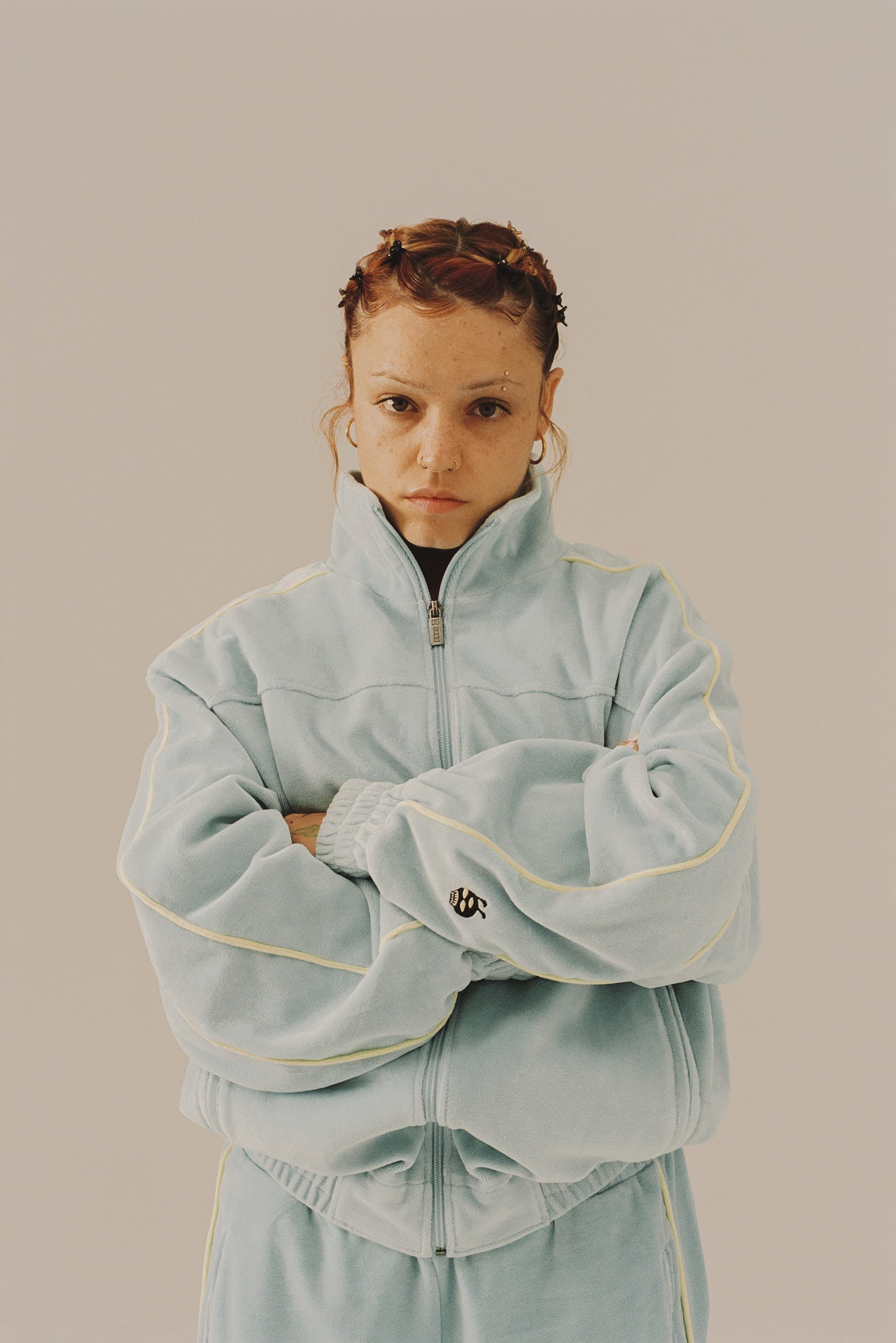 THE SWARM DC SHOES X GRIMEY VELVET TRACK JACKET BLUE